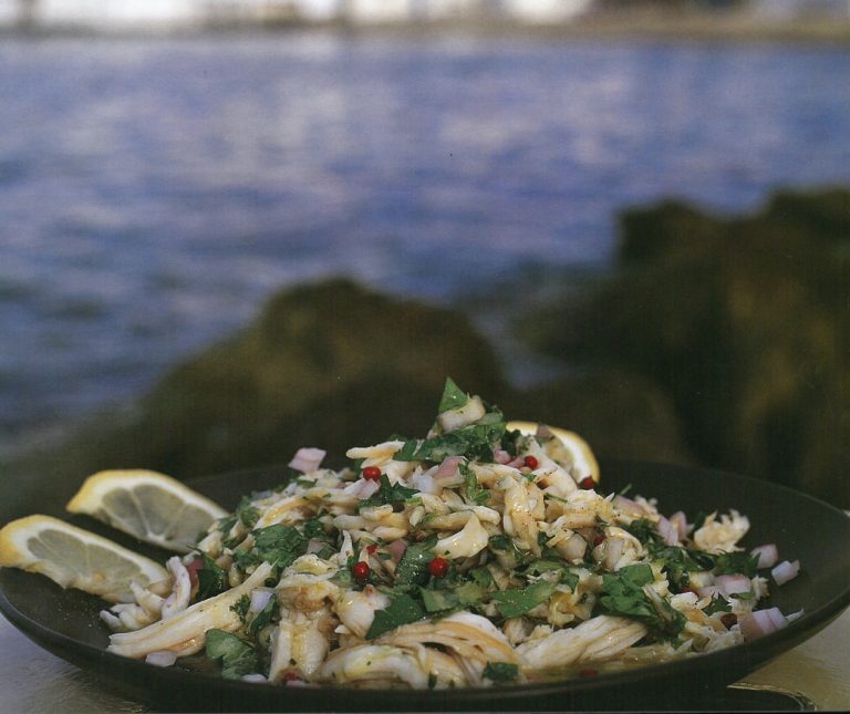 Salatouri is a dish that is common in the Cyclades and is prepaRed Dry from the skins of the skate together with onion, dill, olive oil, lemon, salt and pepper.